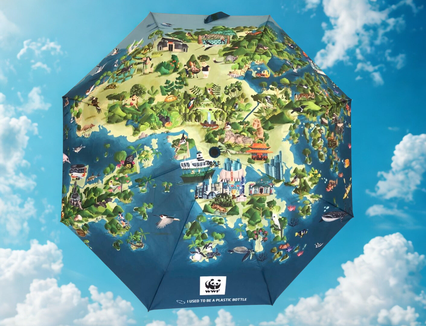 RPET auto foldable umbrella with wildlife map – Panda Shop